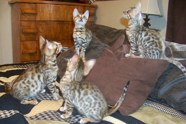 Kittens come with their vaccinations current for the current age, a health record, microchip, and a health guarantee & contract. Pet kittens are spayed or neutered before leaving. For a sample copy of our kitten contract & health guarantee please email us: lileopardcat@earthlink.net